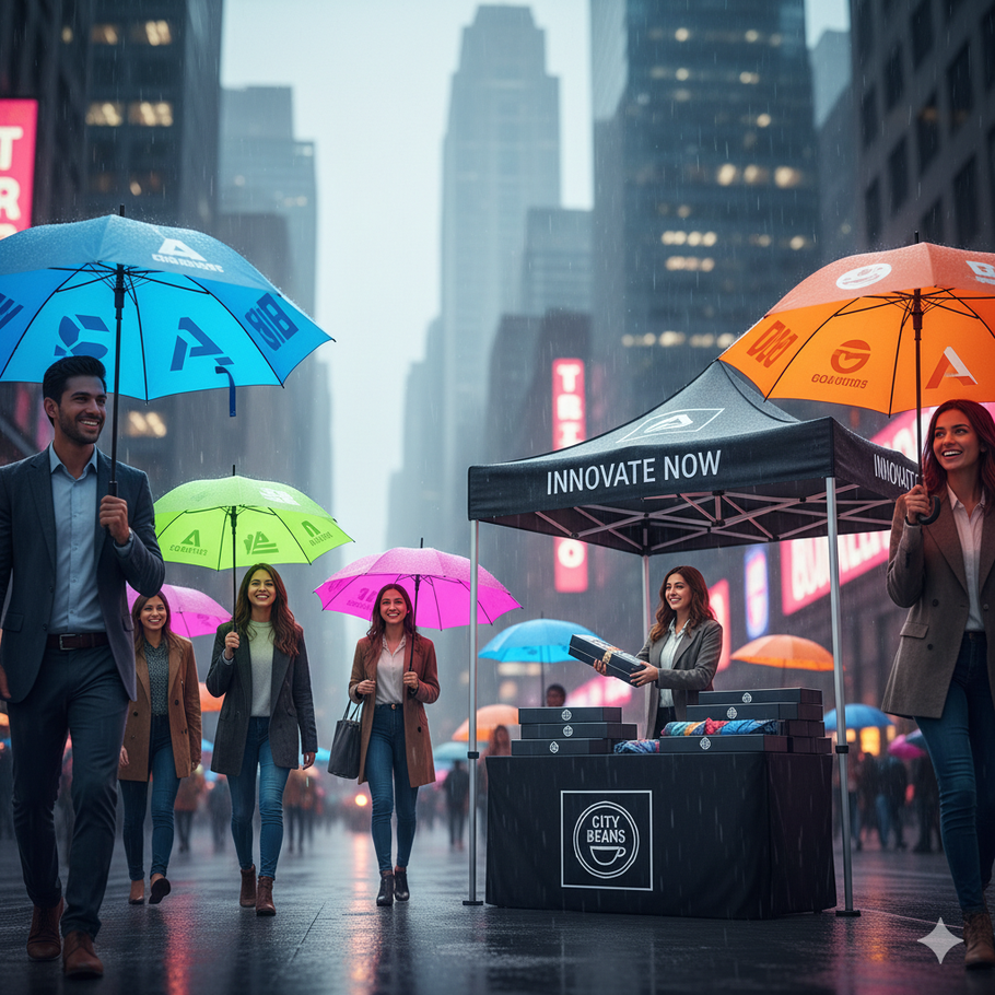 Tシャツやバッグなどのノベルティと比較しても、傘は雨が降った時に頭上全体を覆うため、ブランドのロゴやメッセージを印刷するスペースが豊富にあります。大きく、はっきりと印刷されたロゴは視認性が高く、使用者が街中を歩くたびに、企業の「歩く広告塔」として機能します。
