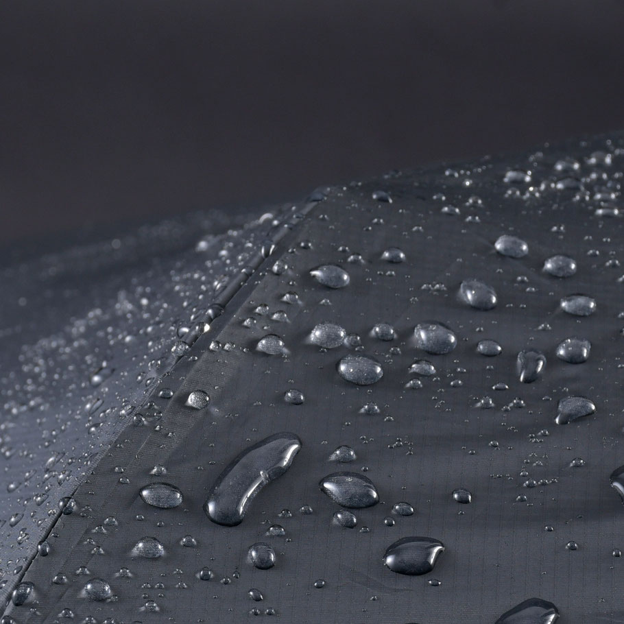 高密度織物: 繊維の隙間が少ない高密度の生地は、それ自体が水を浸透させにくく、高い撥水性を発揮します。